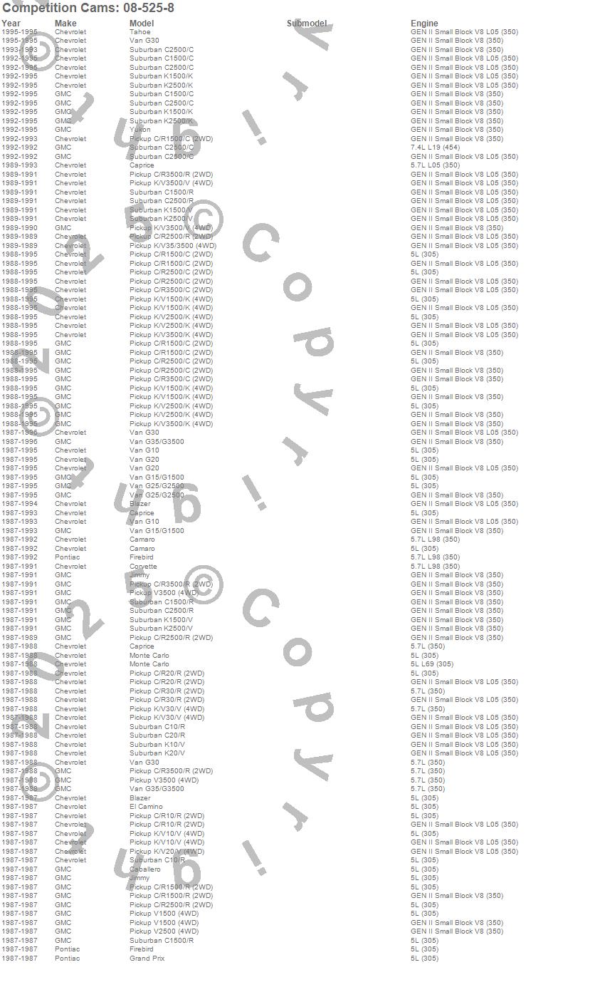 Below is an abreviated list of applications for the Tri-Power Xtreme Camshaft.