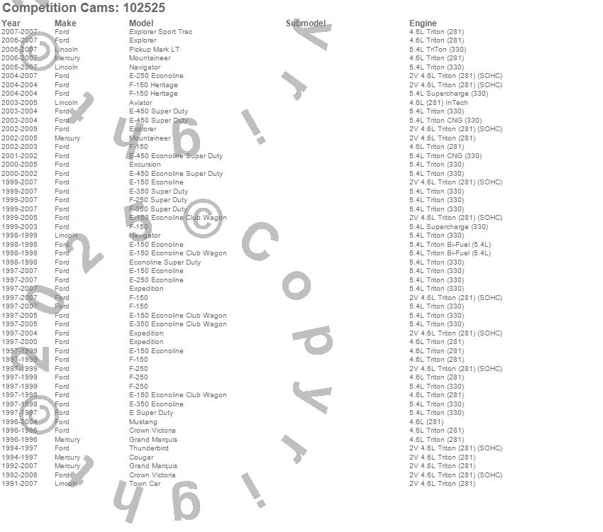 Below is an abreviated list of applications for the Tri-Power Xtreme Camshaft.