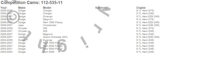 Below is an abreviated list of applications for the Tri-Power Xtreme Camshaft.