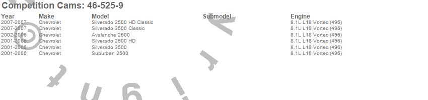 Below is an abreviated list of applications for the Tri-Power Xtreme Camshaft.