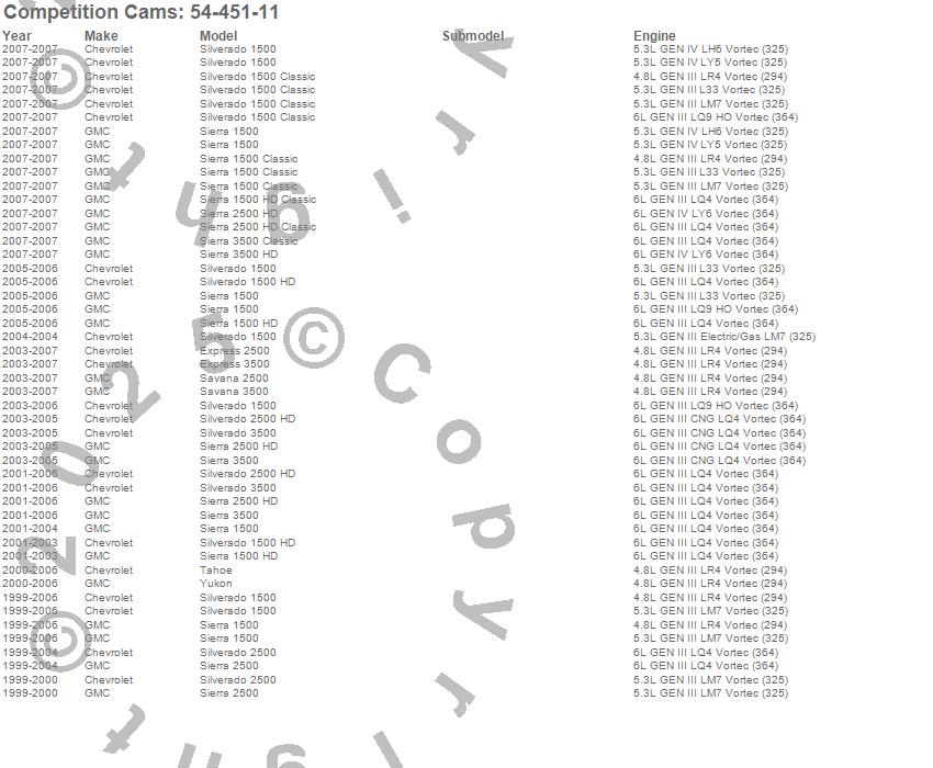 Below is an abreviated list of applications for the XFI Xtreme Truck Fuel Injection Camshaft.