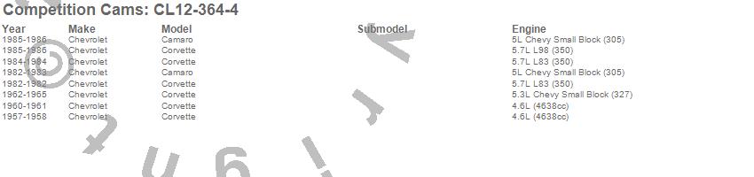 Below is an abreviated list of applications for the Xtreme Fuel Injection Camshaft/Lifter Kit.