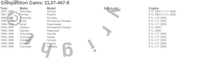 Below is an abreviated list of applications for the Xtreme Fuel Injection Camshaft/Lifter Kit.