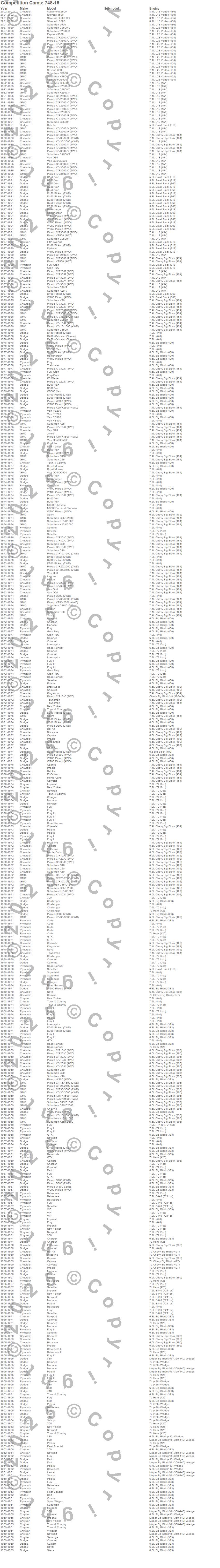 300, 330, 440, 880, Avalanche 2500, B100 Van, B150, B150 Van, B200 Van, B250, B250 Van, B300 Van, B350, B350 Van, Barracuda, Bel Air, Belvedere, Belvedere II, Biscayne, Blazer more…