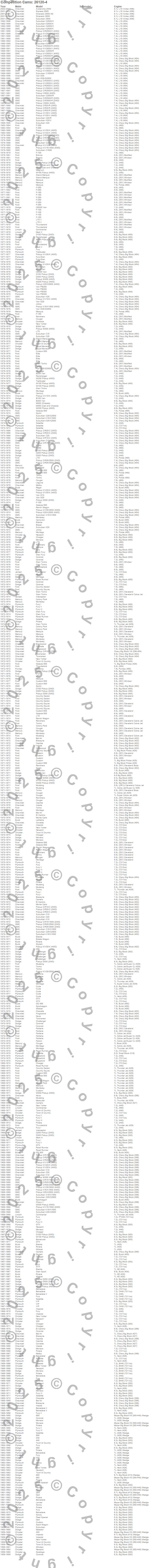300, 330, 440, 880, Avalanche 2500, B100 Van, B200 Van, B300 Van, Barracuda, Bel Air, Belvedere, Belvedere II, Biscayne, Blazer, Blazer K5, Bronco, Brookwood, C10 Pickup, C10 Suburban, C15 Suburban more…