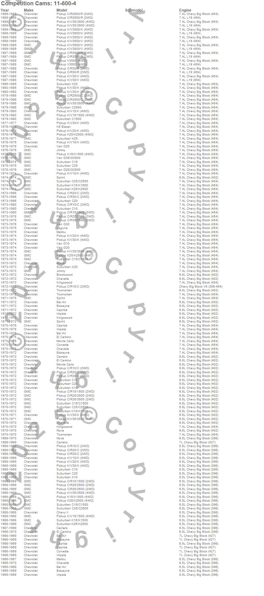 Below is an abreviated list of applications for the Thumpr Camshaft.