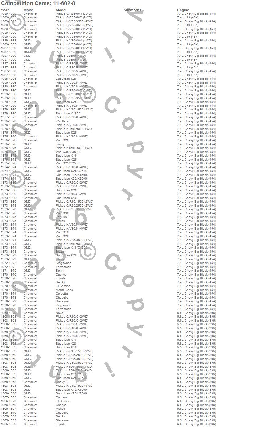 Below is an abreviated list of applications for the Big Mutha Thumpr Camshaft.