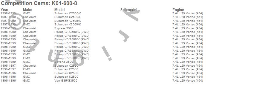 Below is an abreviated list of applications for the Thumpr Camshaft Kit.