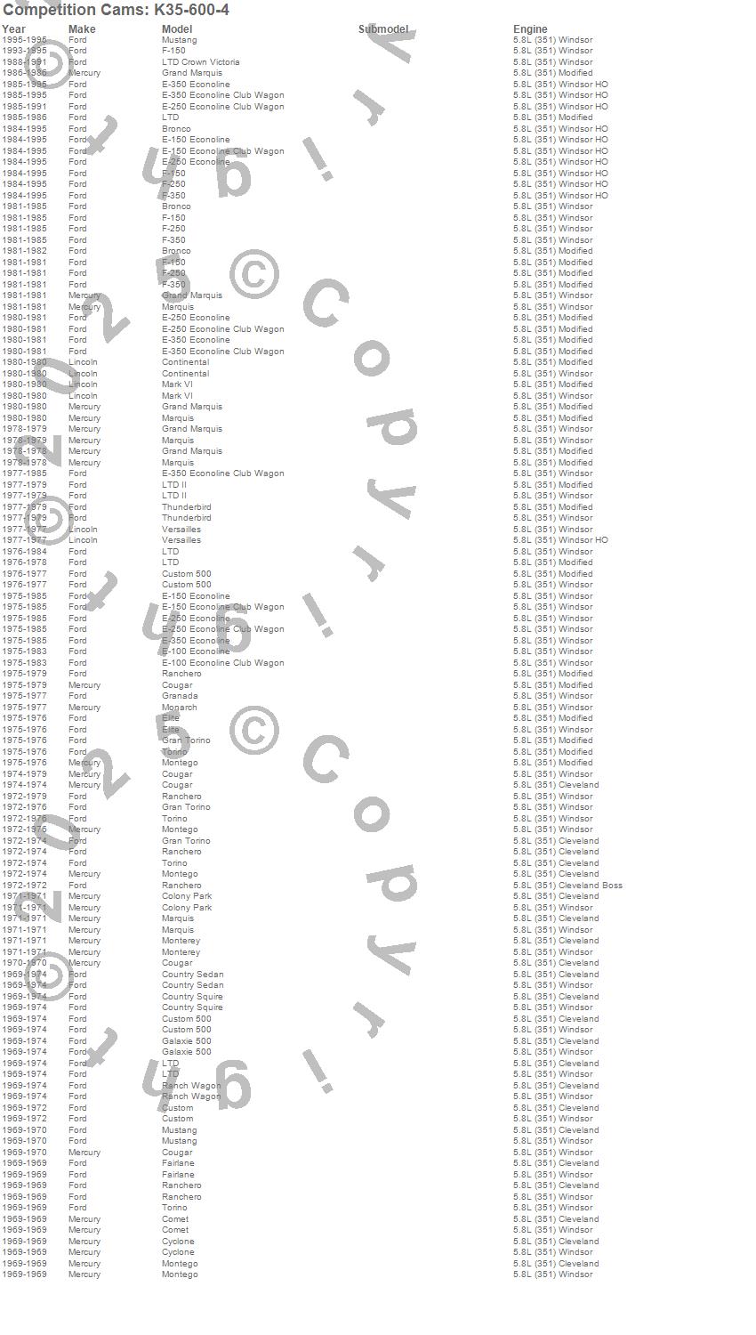 Bronco, Colony Park, Comet, Continental, Cougar, Country Sedan, Country Squire, Custom, Custom 500, Cyclone, E-100 Econoline, E-100 Econoline Club Wagon, E-150 Econoline, E-150 Econoline Club Wagon, E-250 Econoline, E-250 Econoline Club Wagon, E-350 Econoline, E-350 Econoline Club Wagon, Elite, F-100 more…