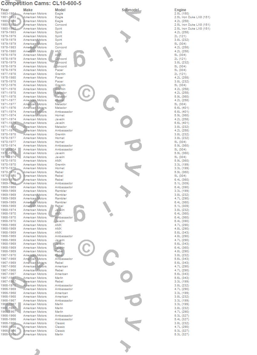 Competition Cams Thumpr Camshaft/Lifter Kit CL10-600-5 Features: