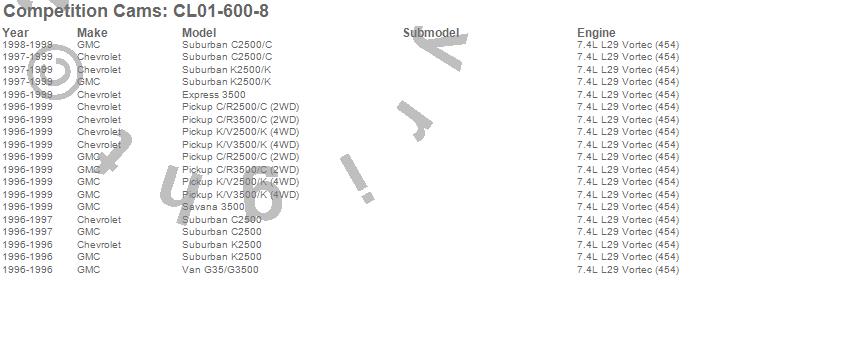 Below is an abreviated list of applications for the Thumpr Camshaft/Lifter Kit.