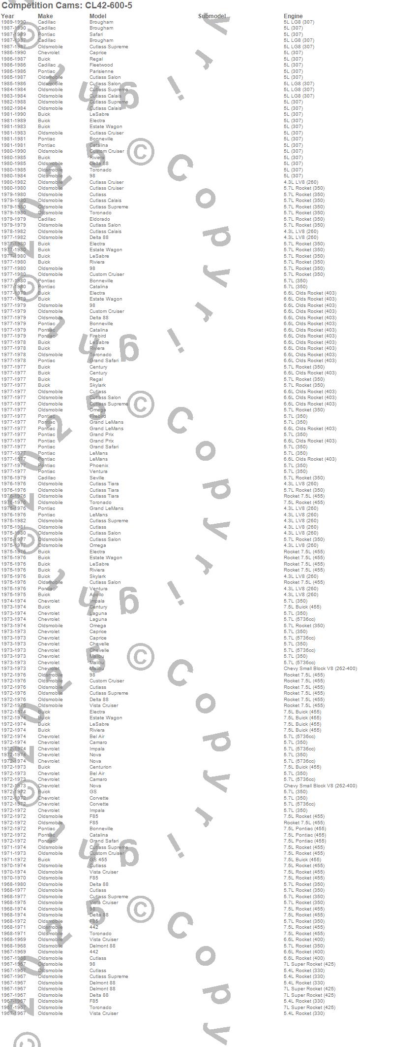 Below is an abreviated list of applications for the Thumpr Camshaft/Lifter Kit.