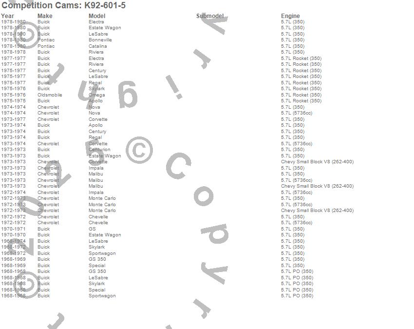 Below is an abreviated list of applications for the Mutha Thumpr Camshaft Kit.