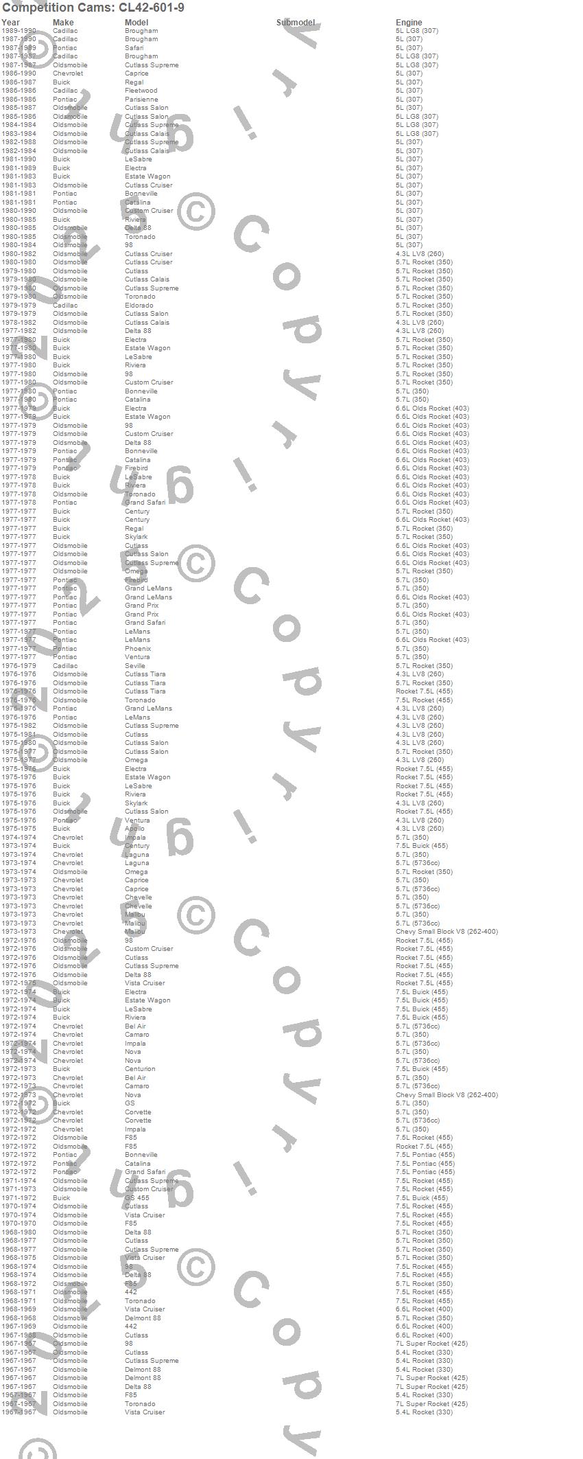 442, 98, Apollo, Bel Air, Bonneville, Brougham, Camaro, Caprice, Catalina, Centurion, Century, Chevelle, Corvette, Custom Cruiser, Cutlass, Cutlass Calais, Cutlass Cruiser, Cutlass Salon, Cutlass Supreme, Cutlass Tiara more…