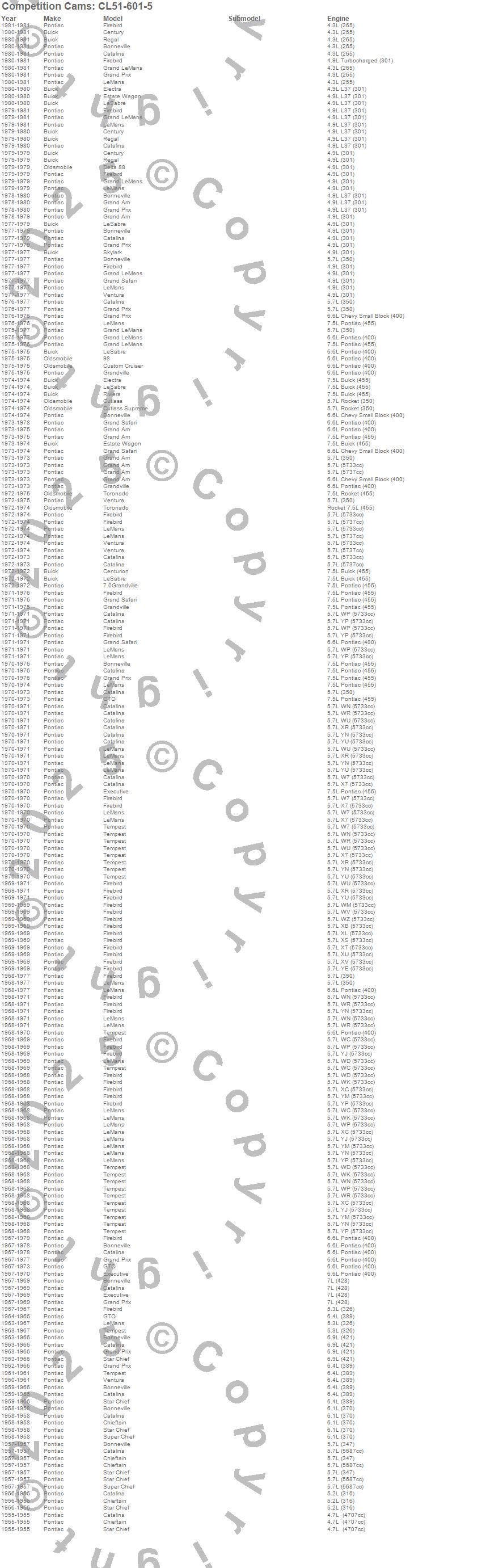 Below is an abreviated list of applications for the Mutha Thumpr Camshaft/Lifter Kit.