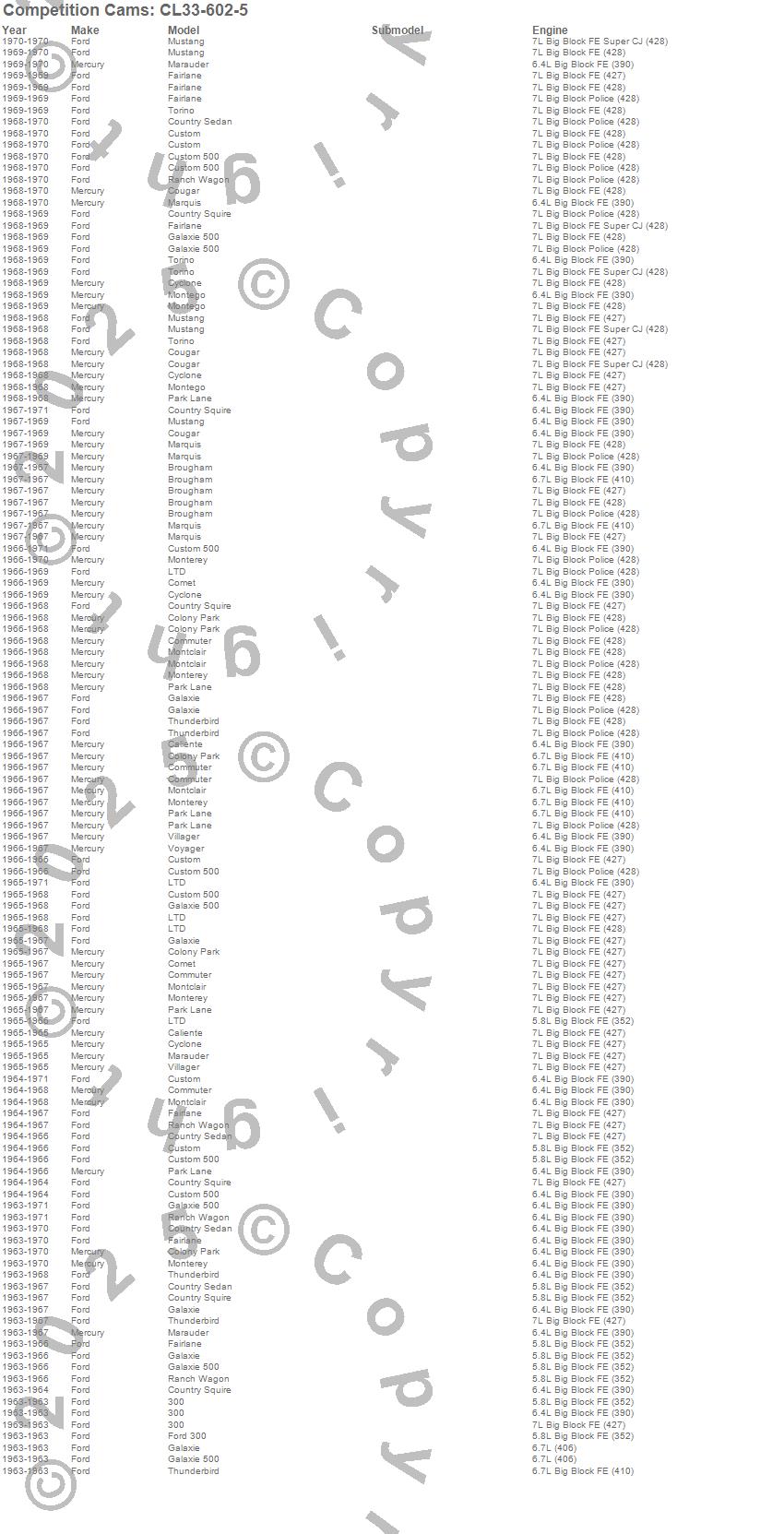 Below is an abreviated list of applications for the Big Mutha Thumpr Camshaft/Lifter Kit.