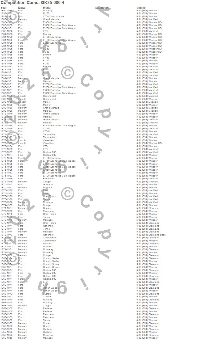 Bronco, Colony Park, Comet, Continental, Cougar, Country Sedan, Country Squire, Custom, Custom 500, Cyclone, E-100 Econoline, E-100 Econoline Club Wagon, E-150 Econoline, E-150 Econoline Club Wagon, E-250 Econoline, E-250 Econoline Club Wagon, E-350 Econoline, E-350 Econoline Club Wagon, Elite, F-100 more…