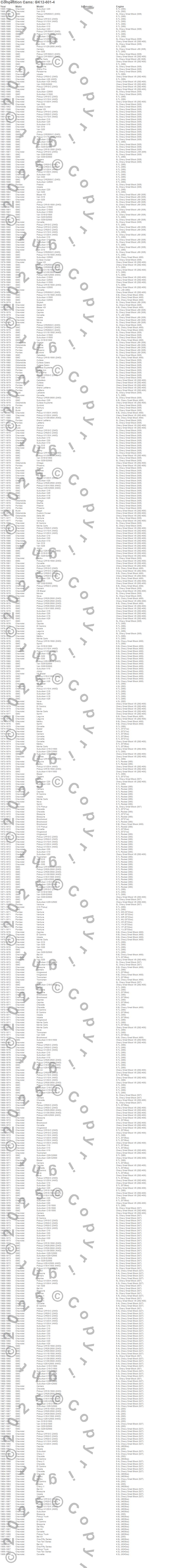Below is an abreviated list of applications for the Mutha Thumpr Camshaft Small Kit.