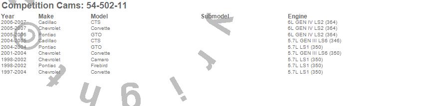 Below is an abreviated list of applications for the XFI Xtreme Fuel Injection Camshaft.