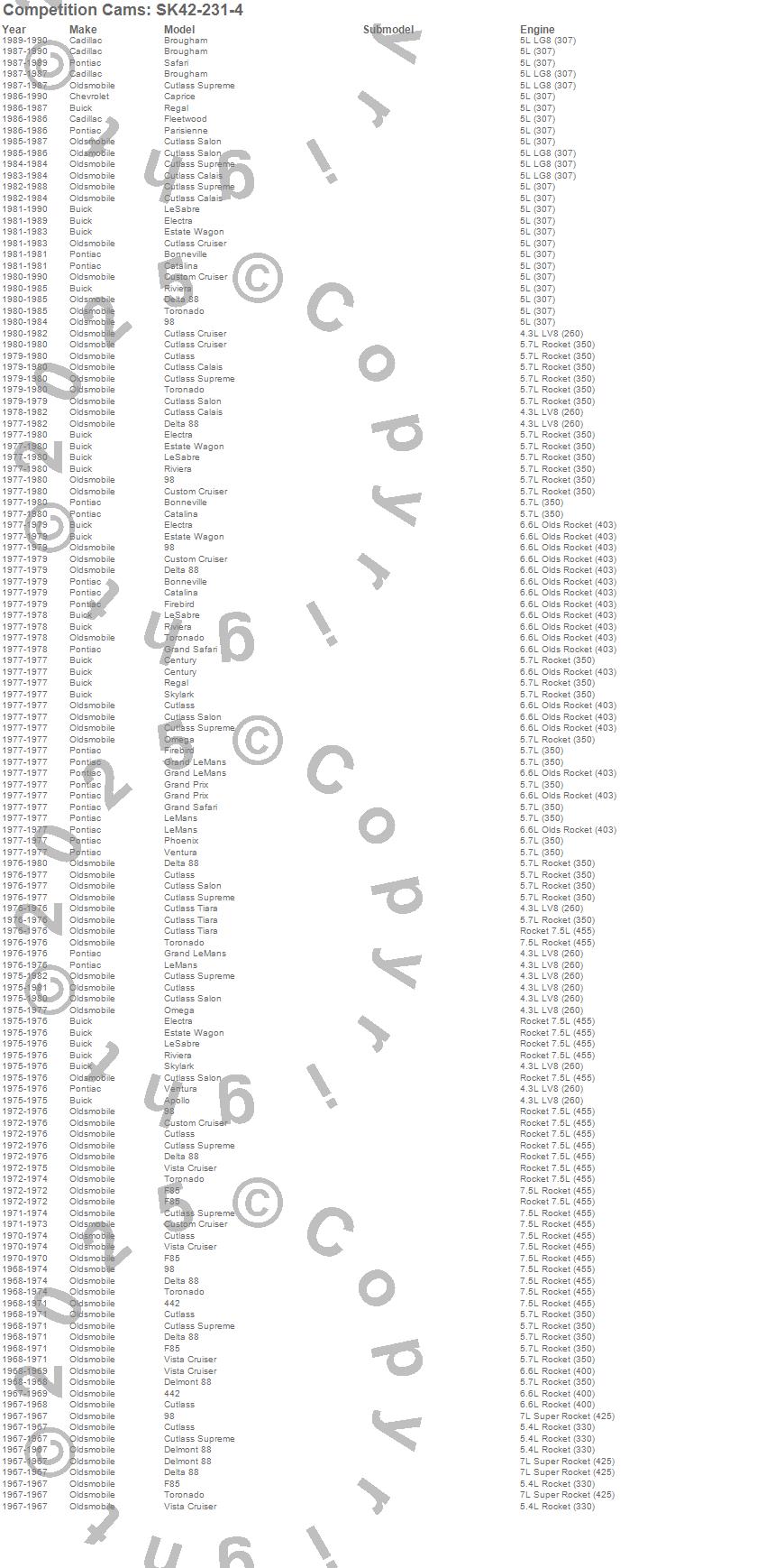 Below is an abreviated list of applications for the Magnum Muscle Camshaft Small Kit.