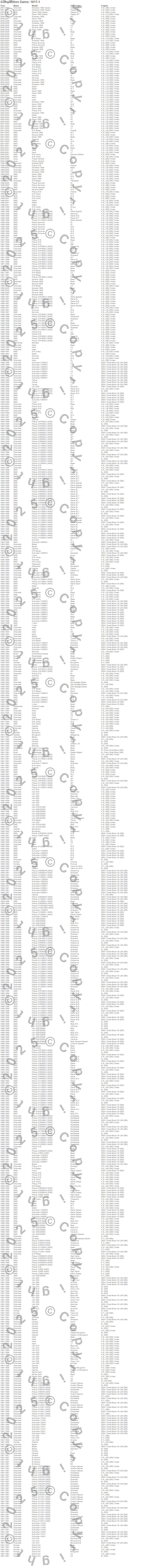 Astro, Blazer, Bravada, Brougham, C1500, C1500 Pickup, C1500 Suburban, C2500 Pickup, C2500 Suburban, C3500 Pickup, Camaro, Caprice, Commercial Chassis, Corvette, Custom Cruiser, Express 1500, Express 2500, Firebird, Fleetwood, G10 more…