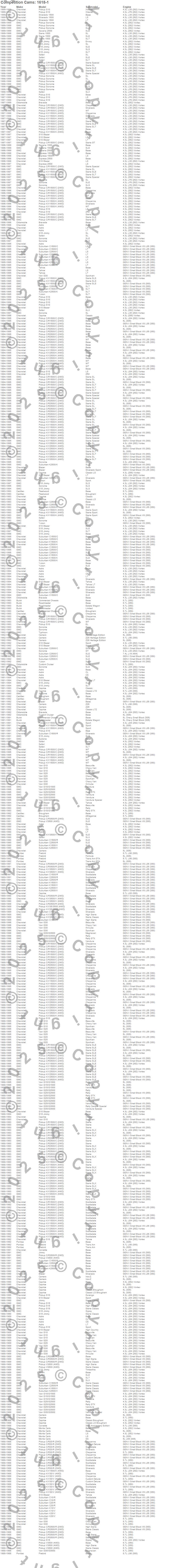 Astro, Blazer, Bravada, Brougham, C1500, C1500 Pickup, C1500 Suburban, C2500 Pickup, C2500 Suburban, C3500 Pickup, Camaro, Caprice, Commercial Chassis, Corvette, Custom Cruiser, Express 1500, Express 2500, Firebird, Fleetwood, G10 more…
