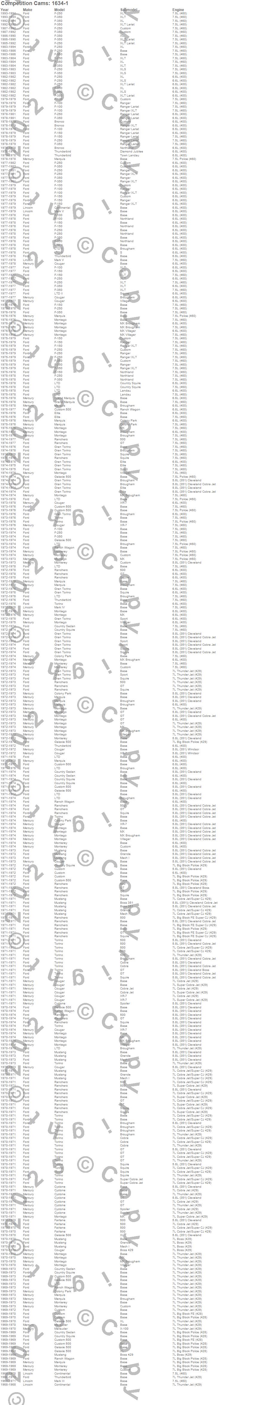 Bronco, Colony Park, Continental, Cougar, Country Sedan, Country Squire, Custom, Custom 500, Cyclone, Elite, F-100, F-150, F-250, F-350, Fairlane, Galaxie 500, Gran Torino, Grand Marquis, LTD, LTD II more…
