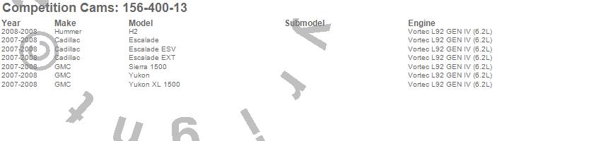 Below is an abreviated list of applications for the Xtreme Fuel Injection SPR Camshaft.