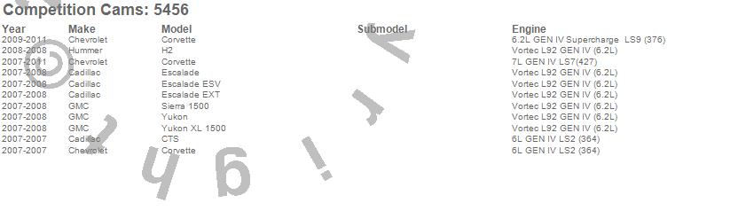 Below is an abreviated list of applications for the Cam Phaser Limiter Kit. Corvette, CTS, Escalade, Escalade ESV, Escalade EXT, H2, Sierra 1500, Yukon, Yukon XL 1500, Cadillac, Chevrolet, GMC, Hummer, 2011, 2010, 2009, 2008, 2007 more…