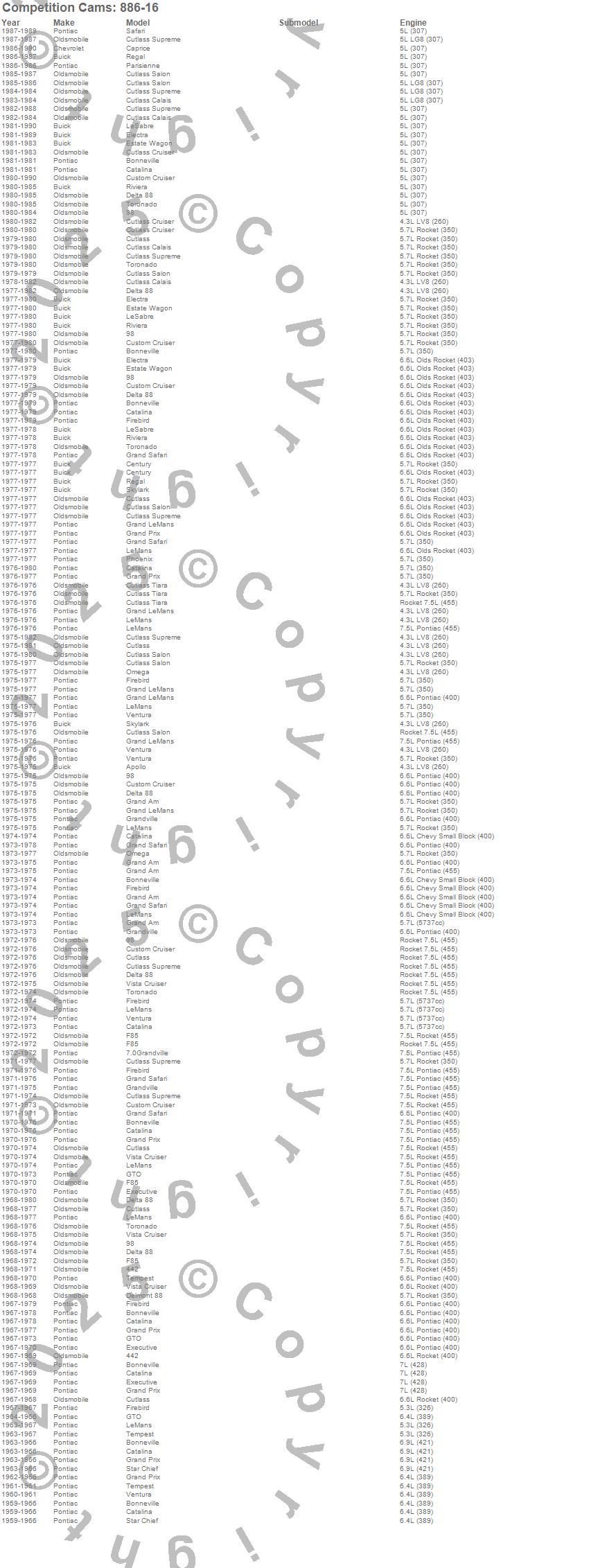 Below is an abreviated list of applications for the Hi-Tech Hydraulic Lifter Set.