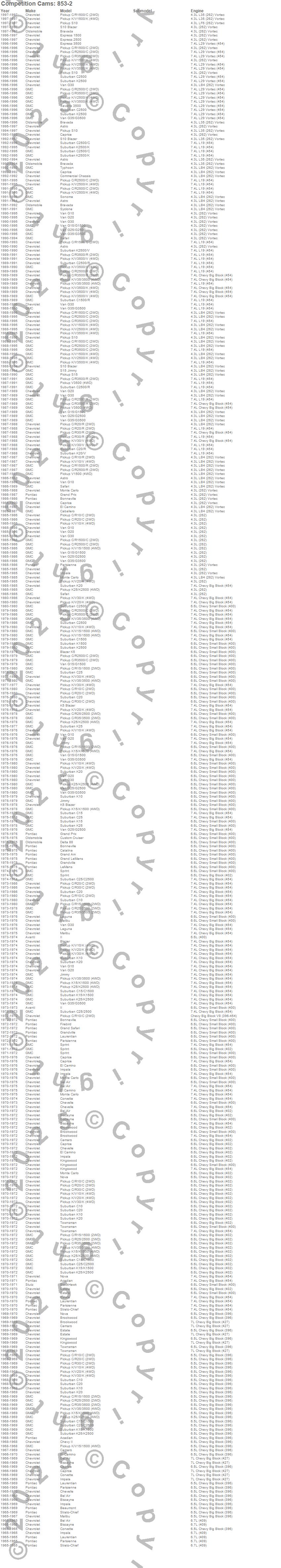 Astro, Bravada, C1500, C1500 Pickup, C2500 Pickup, Caprice, El Camino, Express 1500, Express 2500, G10, G10 Van, G20, G20 Van, G30, G30 Van, Grand Prix, K1500, K1500 Pickup, K2500 Pickup, Monte Carlo more…