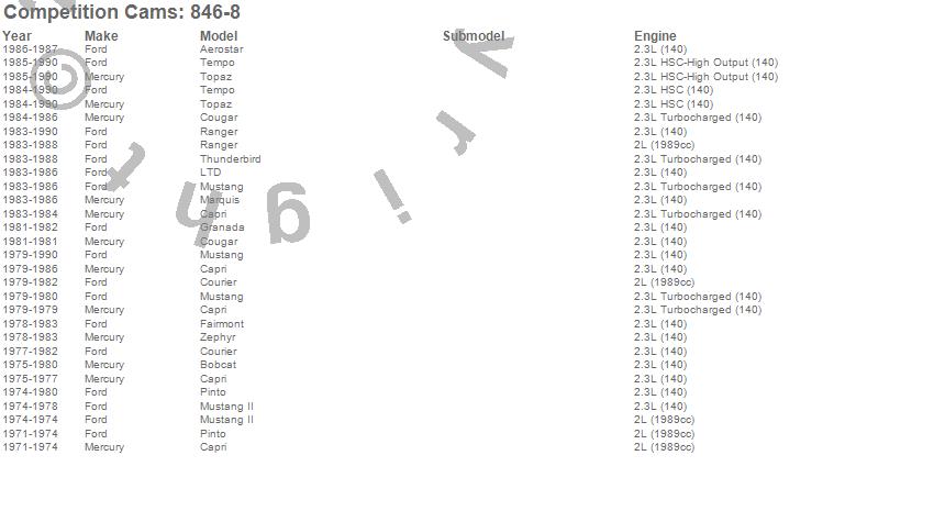 Aerostar, Bobcat, Capri, Cougar, Courier, Fairmont, Granada, LTD, Marquis, Mustang, Mustang II, Pinto, Probe, Ranger, Tempo, Thunderbird, Topaz, Zephyr, Ford, Mercury more…