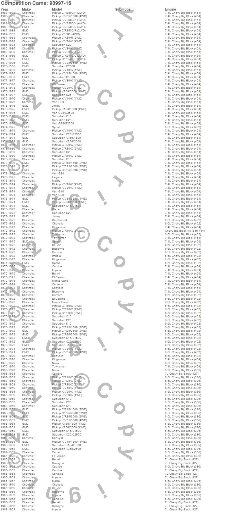 Below is an abreviated list of applications for the Elite Race Solid Roller Lifters.