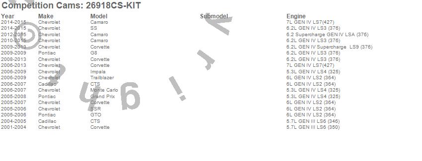Below is an abreviated list of applications for the LS Engine Beehive Valve Spring Kit.