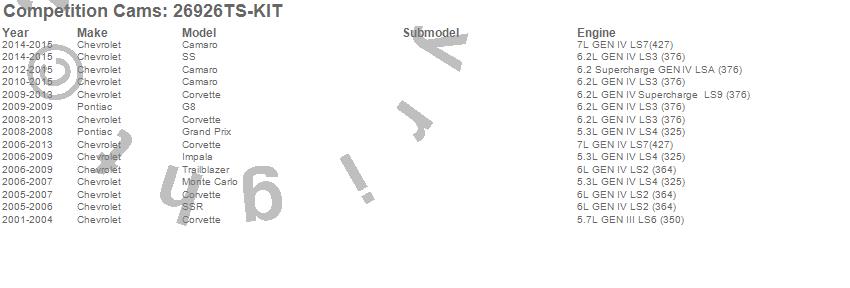 Below is an abreviated list of applications for the LS Engine Dual Valve Spring Kit.