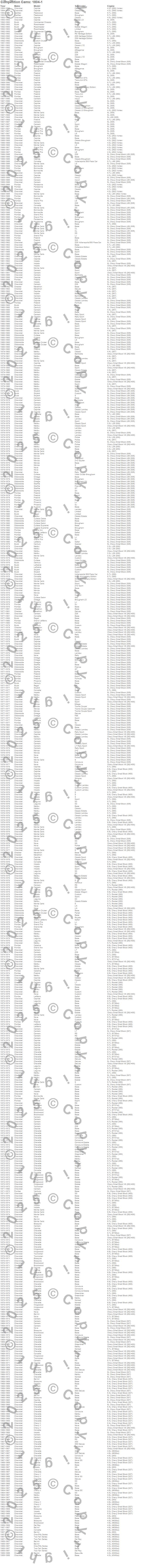 Bel Air, Biscayne, Bonneville, Brookwood, Brougham, Camaro, Caprice, Catalina, Century, Chevelle, Chevy II, Commercial Chassis, Corvette, Custom Cruiser, Cutlass, Cutlass Calais, Cutlass Cruiser, Cutlass Salon, Cutlass Supreme, Del Ray more…