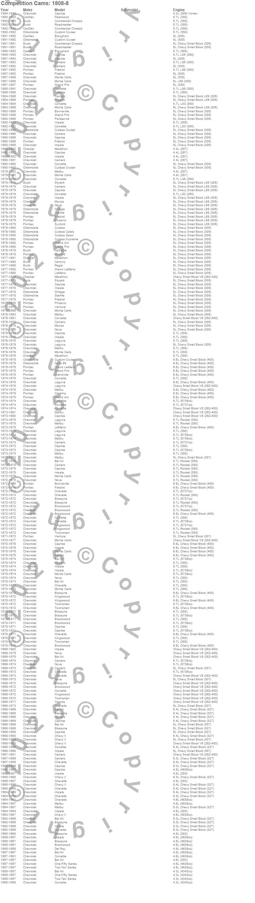 Bel Air, Biscayne, Bonneville, Brookwood, Brougham, Camaro, Caprice, Catalina, Century, Chevelle, Chevy II, Commercial Chassis, Corvette, Custom Cruiser, Cutlass, Cutlass Calais, Cutlass Cruiser, Cutlass Salon, Cutlass Supreme, Del Ray more…