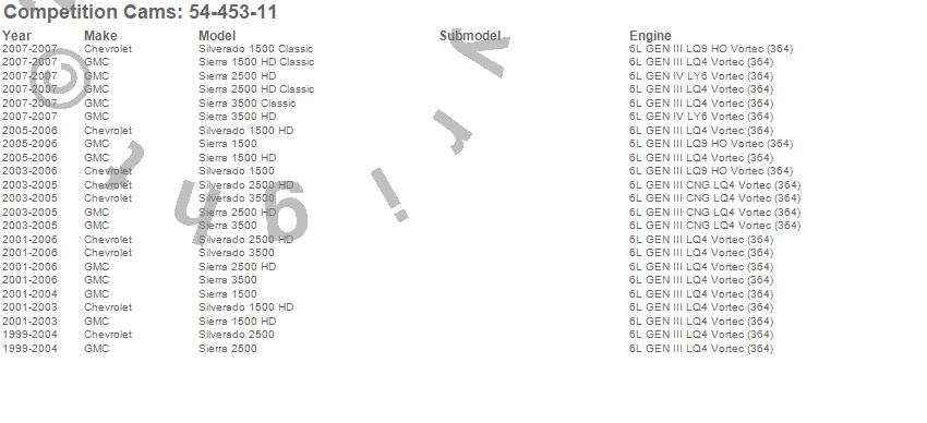 Below is an abreviated list of applications for the LSR Rectangular Port Camshaft.
