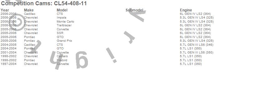 Below is an abreviated list of applications for the Xtreme RPM Camshaft/Lifter Kit.