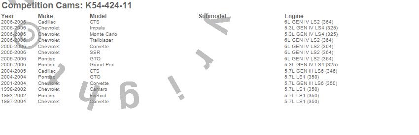 Below is an abreviated list of applications for the Xtreme RPM High Lift Camshaft Kit.