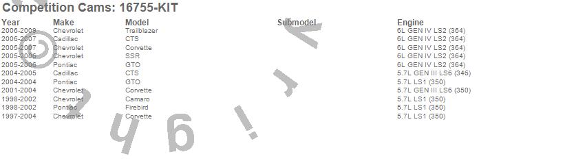 Below is an abreviated list of applications for the LS Rocker Arm Upgrade Kit.