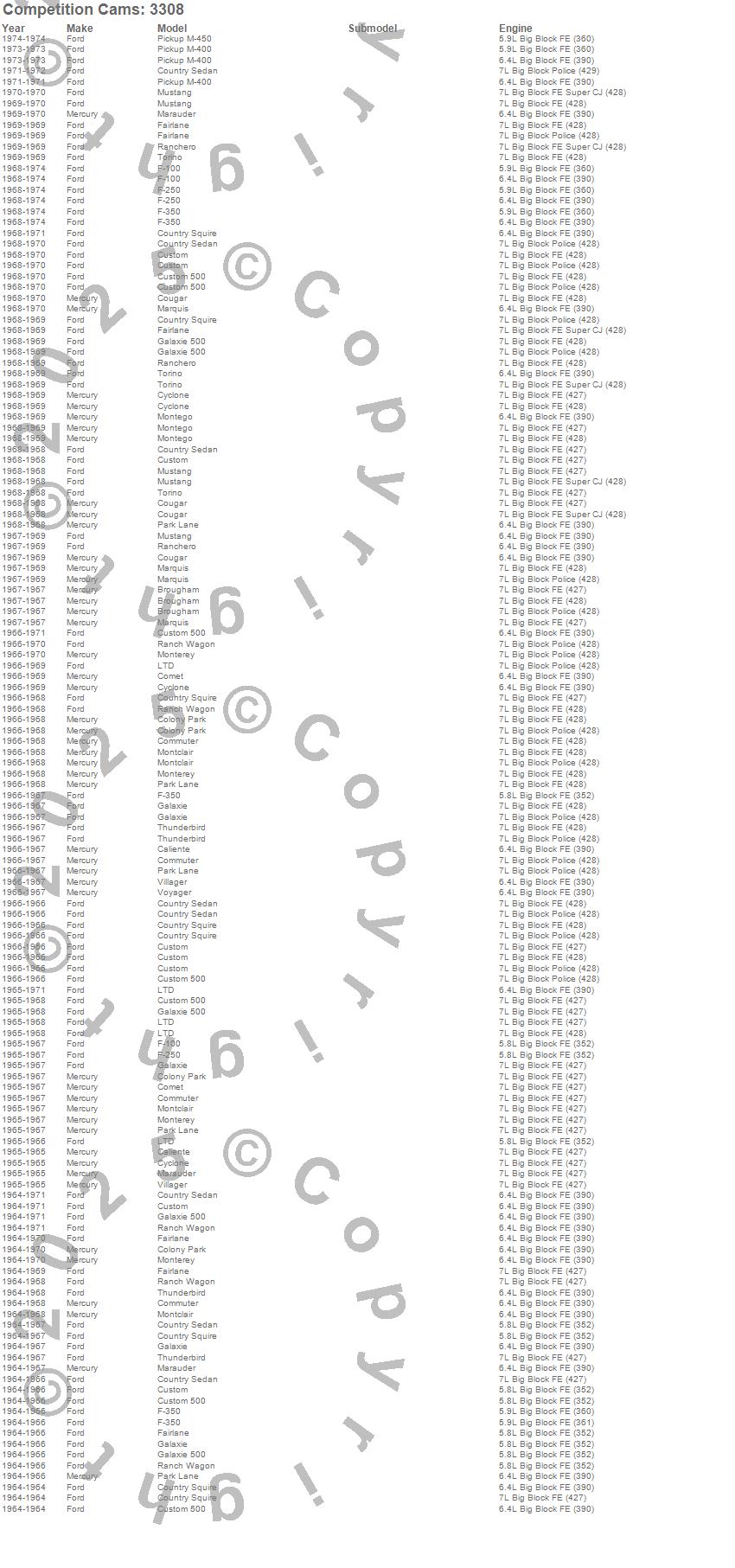 Breezeway, Brougham, Caliente, Colony Park, Comet, Commuter, Cougar, Country Sedan, Country Squire, Custom, Custom 500, Cyclone, F-100, F-250, F-350, Fairlane, Galaxie, Galaxie 500, LTD, M-400 (Pickup) more…