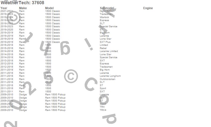 Below is an abreviated list of applications for the WeatherTech TechLiner Bed Mat.