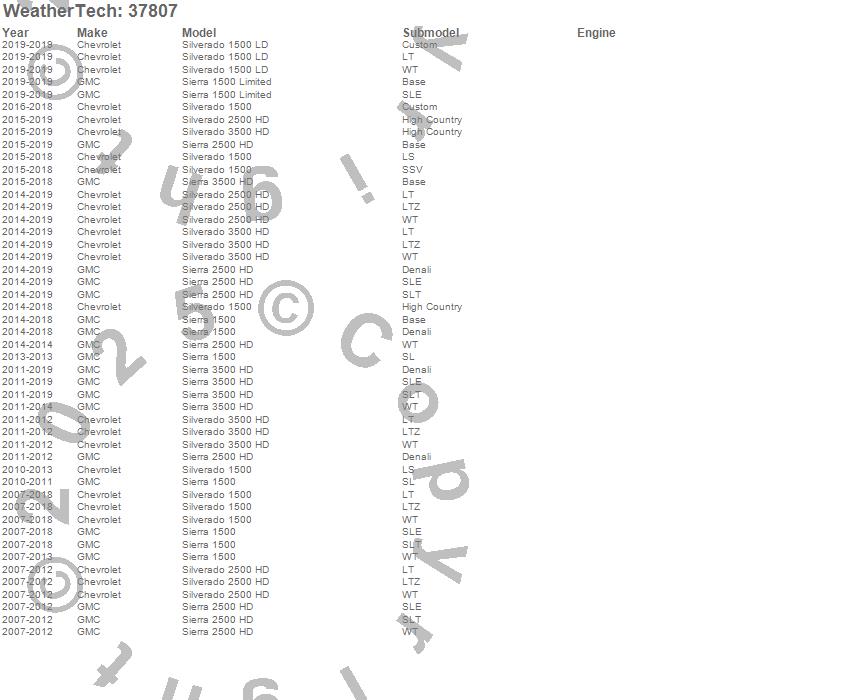 Below is an abreviated list of applications for the WeatherTech TechLiner Bed Mat.