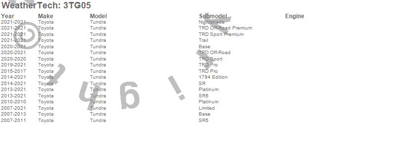 Below is an abreviated list of applications for the WeatherTech TechLiner Taillgate Protector.