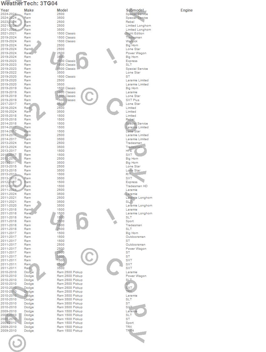 Below is an abreviated list of applications for the WeatherTech TechLiner Taillgate Protector.