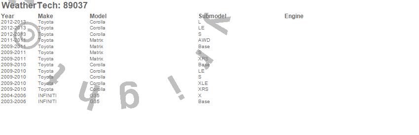 Corolla, G35, Matrix, Infiniti, Toyota, 2013, 2012, 2010, 2009, 2006, 2005, 2004, 2003 more…
