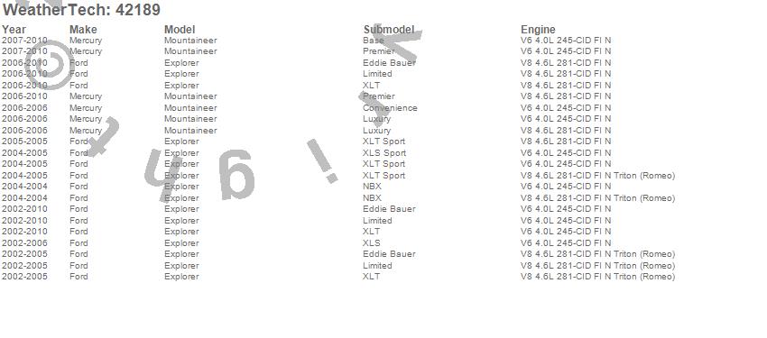 Below is an abreviated list of applications for the Cargo Liner. Explorer, Ford, 2010, 2009, 2008, 2007, 2006, 2005, 2004, 2003, 2002 more…