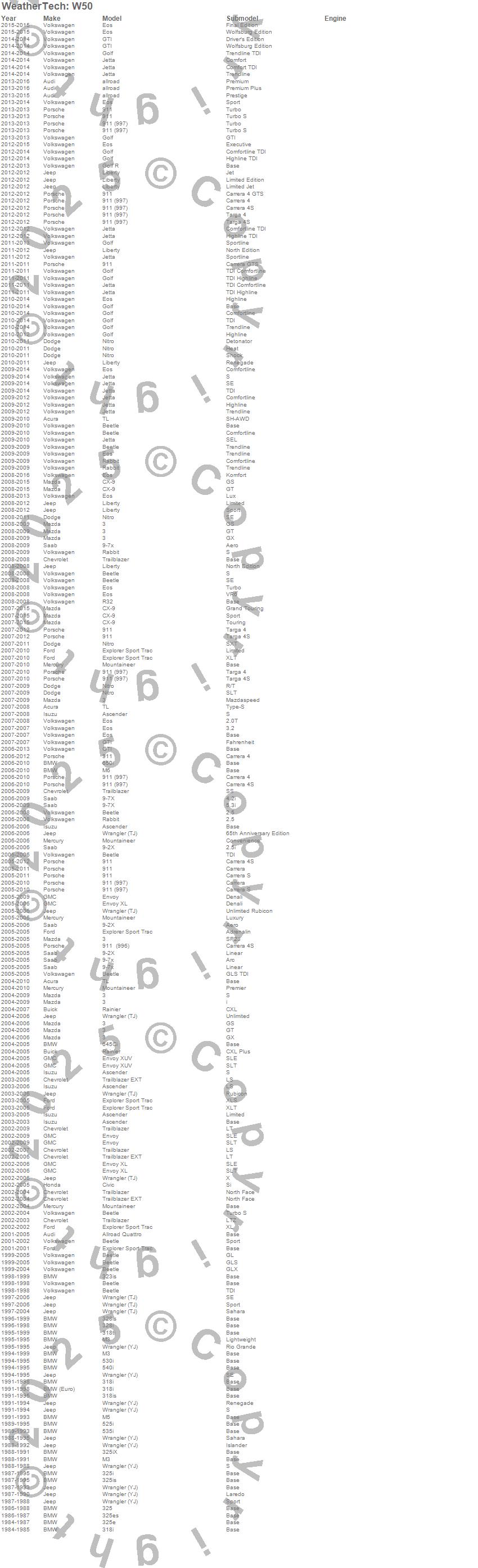 Below is an abreviated list of applications for the All Weather Floor Mats.