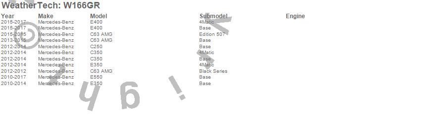 Below is an abreviated list of applications for the All Weather Floor Mats.